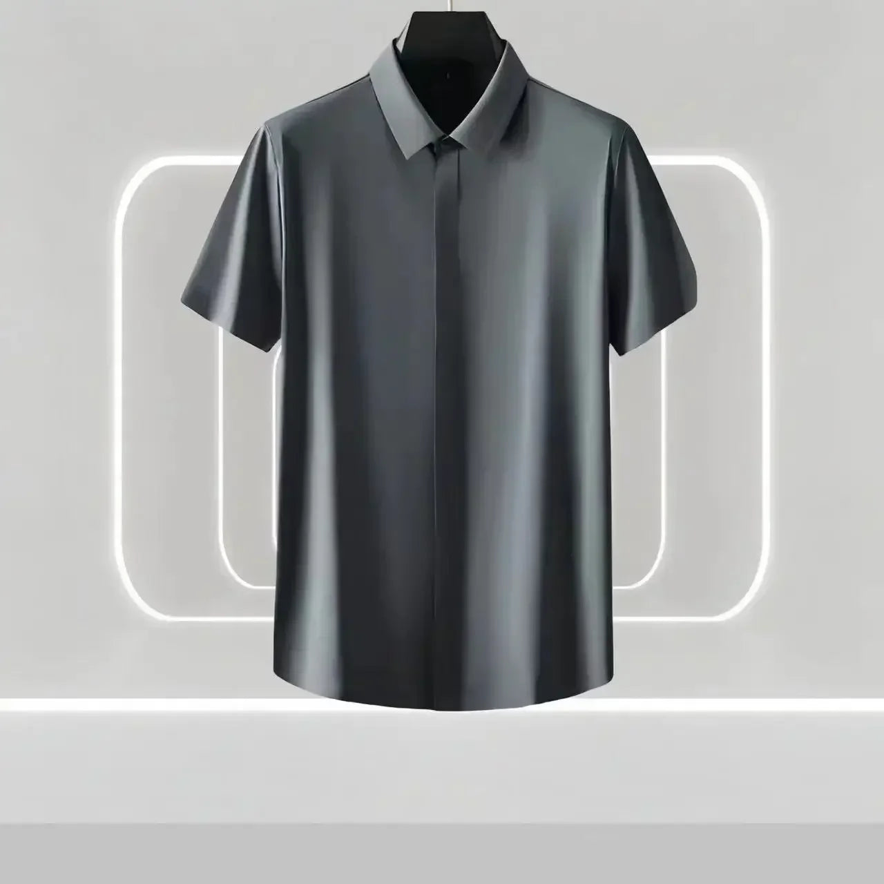 This coordinated set features a fluid short-sleeve shirt and tapered trousers, both crafted from a silky-smooth fabric that feels cool to the touch and breezy on warm days. The clean, minimal silhouette is designed to drape naturally, catching the light with a soft sheen that elevates even your most casual moments.
