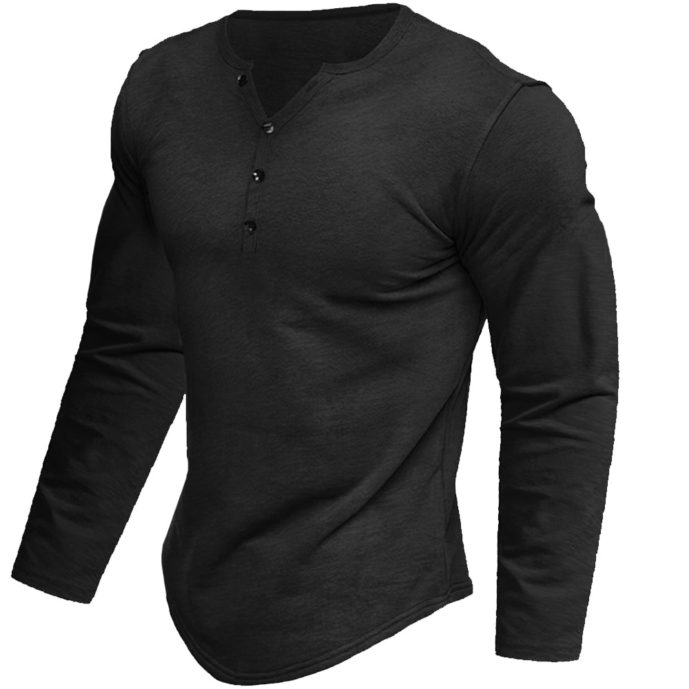 Crafted from a soft, breathable cotton blend, the versatile essential features a handsome neckline, slim-fit, and long sleeves.